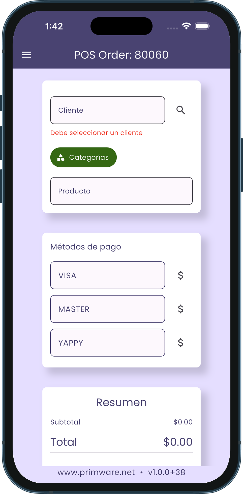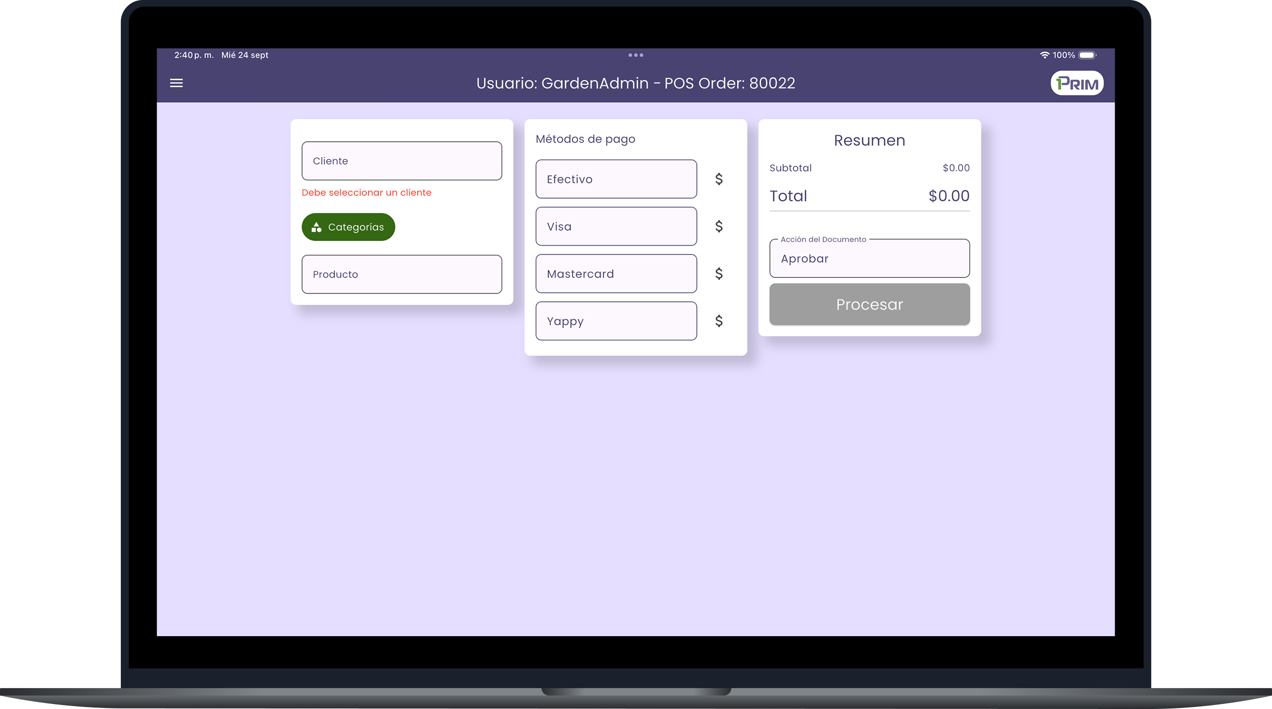 Prim es una aplicación que conecta tus procesos de negocio con una interfaz moderna, intuitiva y multiplataforma. Te permite gestionar clientes, pedidos y operaciones desde tu celular o computadora.